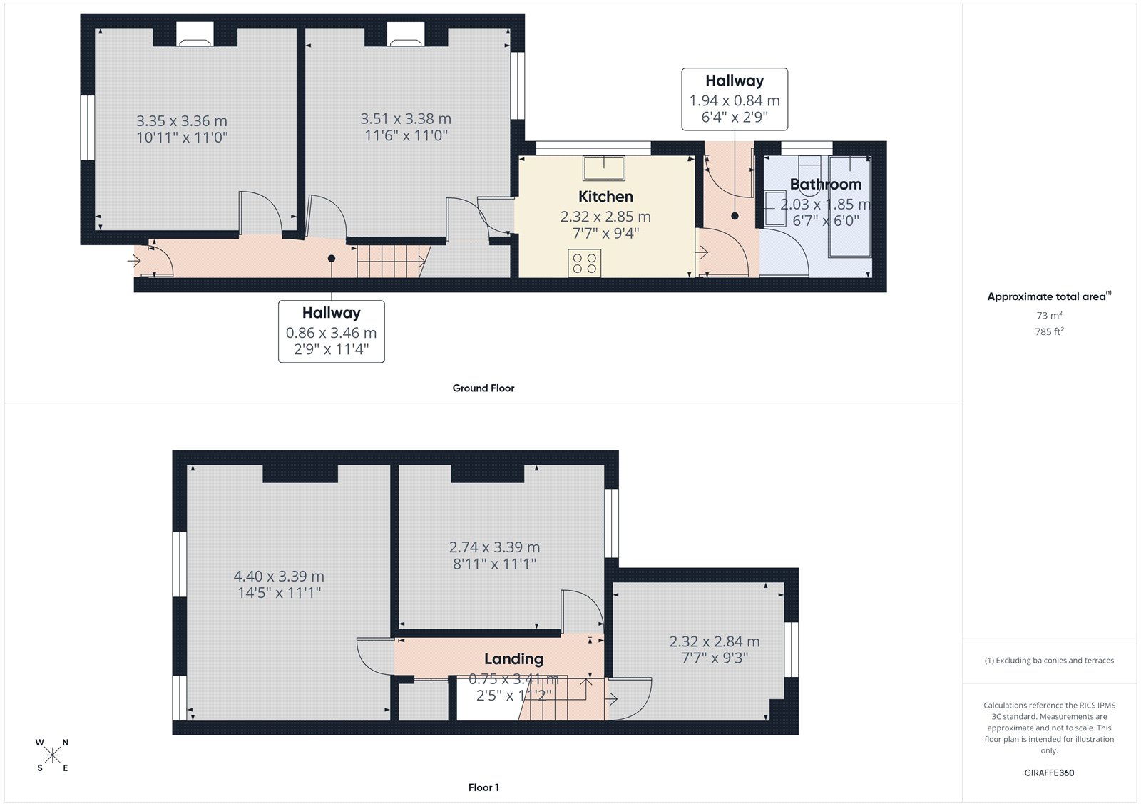 Landing 11'2 x 2'5" (3.41m x 0.75m)