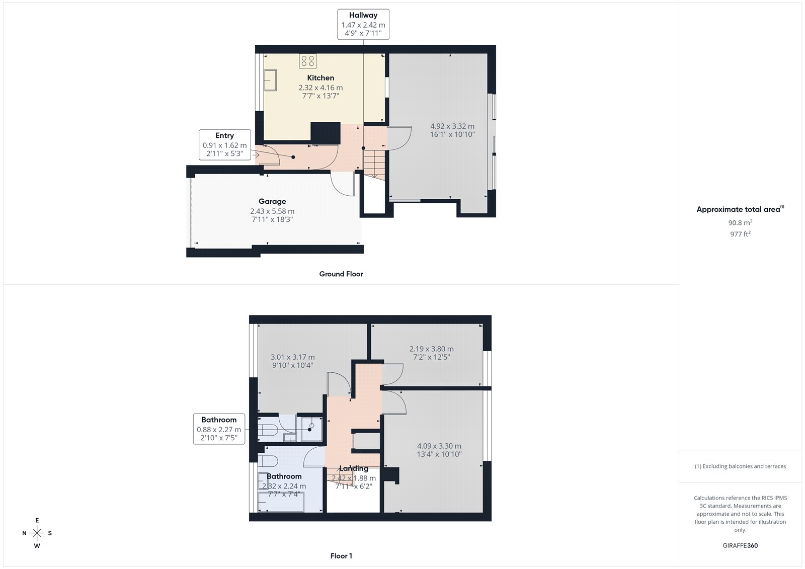 Entrance Hall: 5'3" x 2'11" (1.62m x 0.91m)